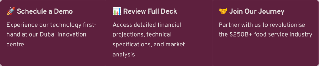 advanced robotics hardware, real-time AI coordination systems, integrated kitchen management software, smart kiosk networks, and centralised control infrastructure.